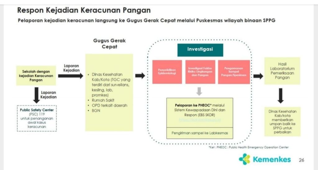“Alurnya jelas. Respon cepat dilakukan oleh gugus tugas melalui Puskesmas wilayah binaan SPPG, kemudian dilakukan investigasi seperti penyelidikan faktor risiko dan pengamanan sampel,” terang Muhtar.
