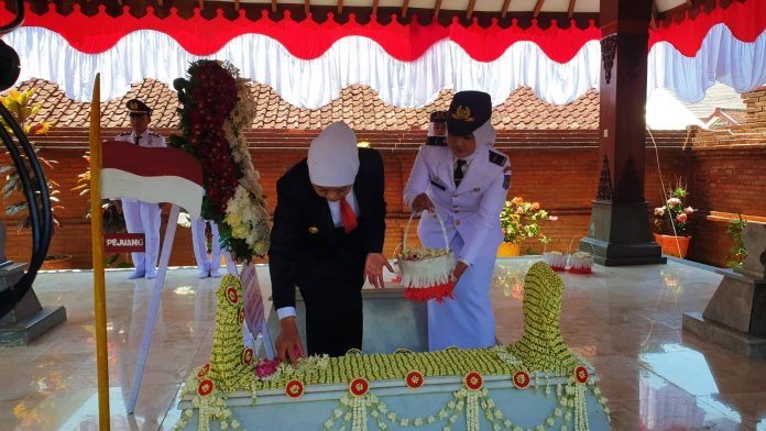 POJOKKATA.COM, Magetan – Peringatan Hari Jadi ke-80 Pemerintah Provinsi Jawa Timur diawali dengan Gubernur Jawa Timur, Khofifah Indar Parawansa, memimpin prosesi ziarah dan tabur bunga di makam Raden Mas Tumenggung (RMT) Ario Soerjo, Gubernur pertama Jawa Timur yang juga Pahlawan Nasional, Minggu (5/10/2024) pagi.