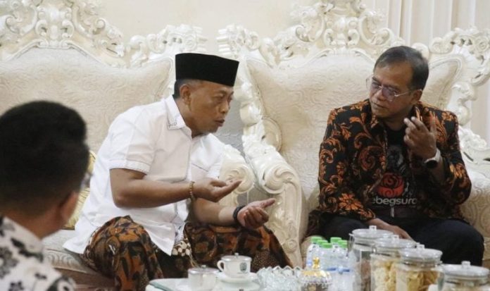 POJOKKATA.COM, Ponorogo – Staf Khusus (Stafsus) Wakil Presiden RI, Suwardi, berkunjung ke Pringgitan atau rumah dinas Bupati Ponorogo Sugiri Sancoko, Jumat (17/10/2025). Dalam pertemuan itu, keduanya berdiskusi serius tentang kearifan lokal dan pelestarian budaya, khususnya Reog Ponorogo yang menjadi ikon daerah sekaligus warisan leluhur.