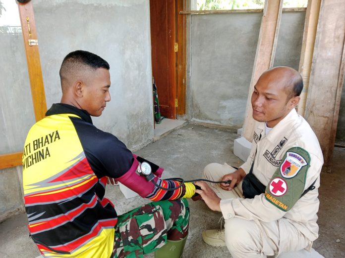 Setiap hari, para tenaga kesehatan melakukan pemeriksaan rutin terhadap personel yang terlibat dalam kegiatan TMMD. Pemeriksaan meliputi pengecekan tekanan darah, suhu tubuh, hingga kondisi fisik umum. Langkah ini dilakukan untuk memastikan seluruh anggota Satgas tetap bugar dan siap menjalankan tugas pembangunan di wilayah desa.