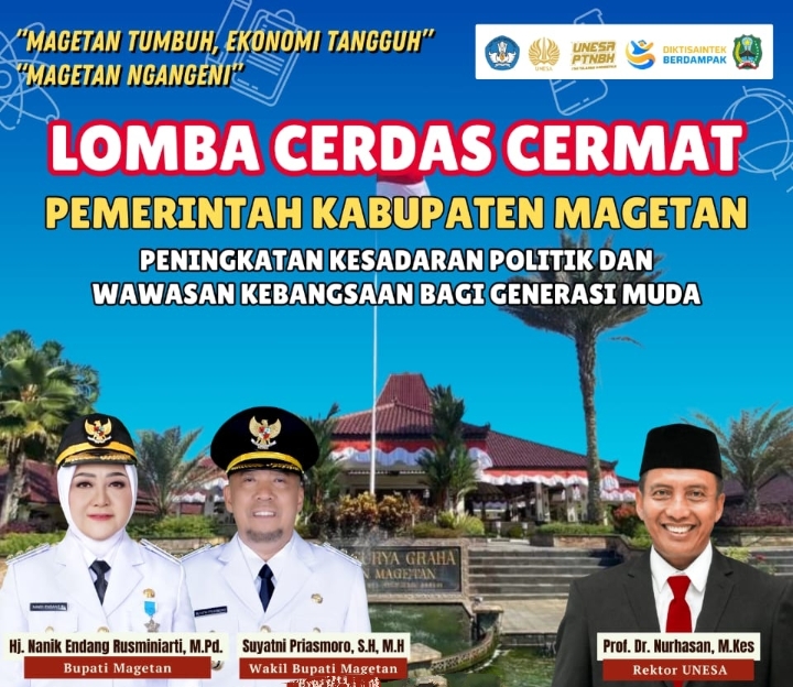 POJOKKATA.COM, Magetan – Pemerintah Kabupaten Magetan kembali mendorong peningkatan kualitas generasi muda lewat ajang kompetisi pendidikan. Melalui Badan Kesatuan Bangsa dan Politik (Kesbangpol), pemkab bakal menggelar lomba cerdas cermat tingkat SMA/SMK/MA sederajat se-Magetan.