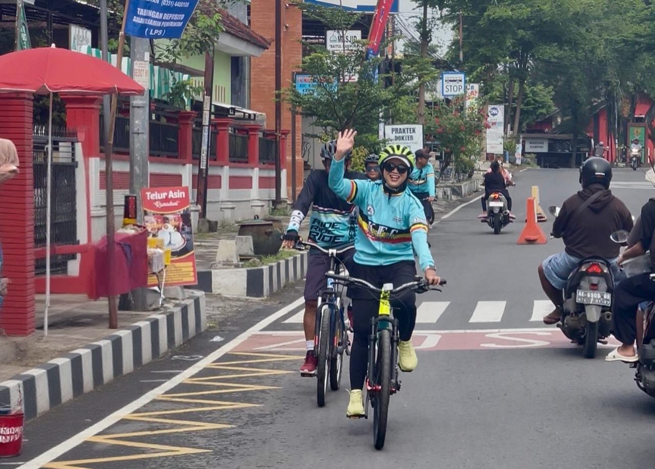 Menariknya, dalam momen perpisahan tersebut, Ari Budi tidak hanya melepas peserta dari garis start. Ia bersama sang suami juga ikut ambil bagian sebagai peserta, berbaur dan gowes bersama ratusan pesepeda lainnya.