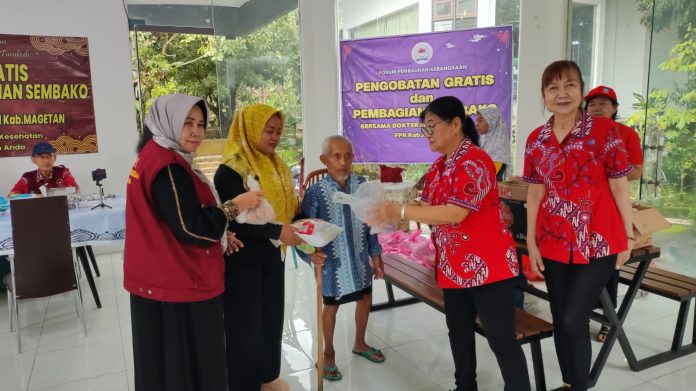 POJOKKATA.COM, MAGETAN – Dokter Medis dan Sosial (Medsos) bersama Paguyuban Sosial Marga Tionghoa Indonesia (PSMTI) Magetan serta Forum Pembauran Kebangsaan (FPK) mengadakan bakti sosial berupa pengobatan gratis dan pembagian sembako di Kabupaten Magetan, Sabtu (7/2/2026).