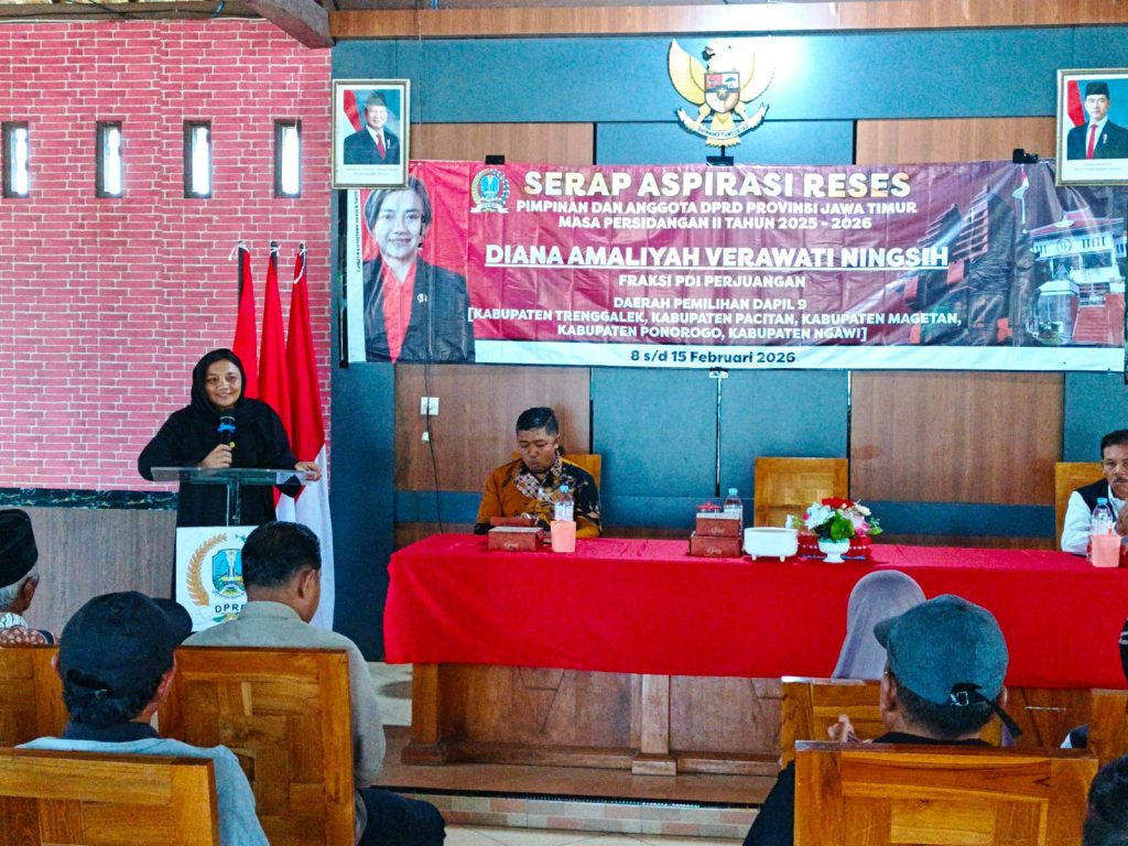 POJOKKATA.COM, MAGETAN – Anggota DPRD Jawa Timur Fraksi PDI Perjuangan, Diana Amaliyah Verawati Ningsih atau akrab disapa Diana Sasa, menggelar reses perdananya di Desa Turi, Kecamatan Panekan, Kabupaten Magetan, Rabu (11/2/2026). Desa tersebut disebut sebagai salah satu basis suara terbesarnya di Magetan pada Pemilu lalu.