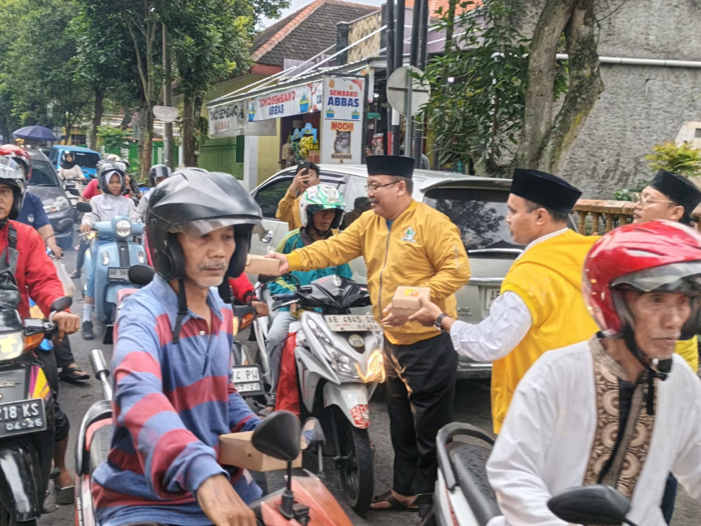 Antusiasme warga terlihat sejak sore. Banyak pengendara dengan senang hati menerima paket takjil yang dibagikan kader Golkar.