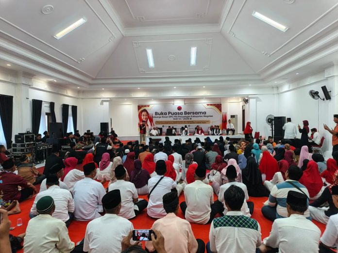 POJOKKATA.COM, MAGETAN – Semangat gotong royong ditunjukkan kader PDI Perjuangan Kabupaten Magetan. Partai berlambang banteng itu menggelar buka puasa bersama sekaligus santunan bagi kaum dhuafa, yatim piatu, dan penyandang disabilitas, Sabtu (14/3/2026) sore.